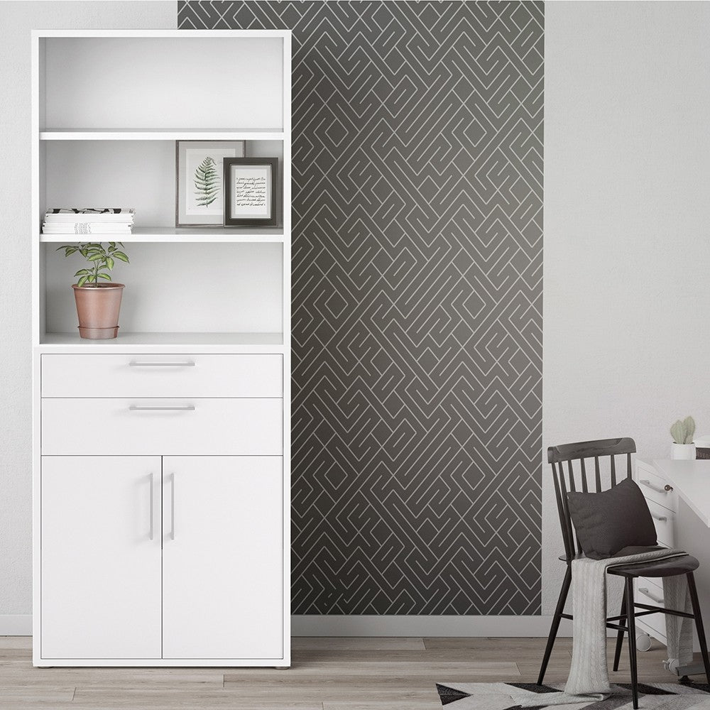 Axton Trinity Bookcase 5 Shelves with 2 Drawers and 2 Doors in White