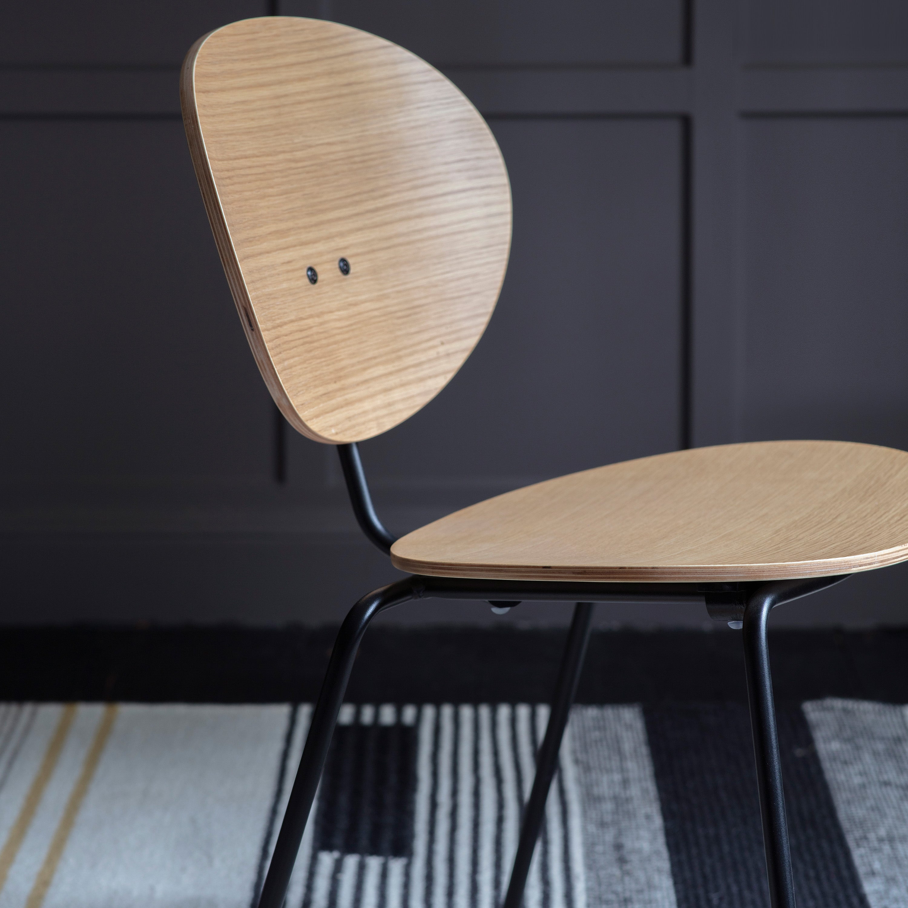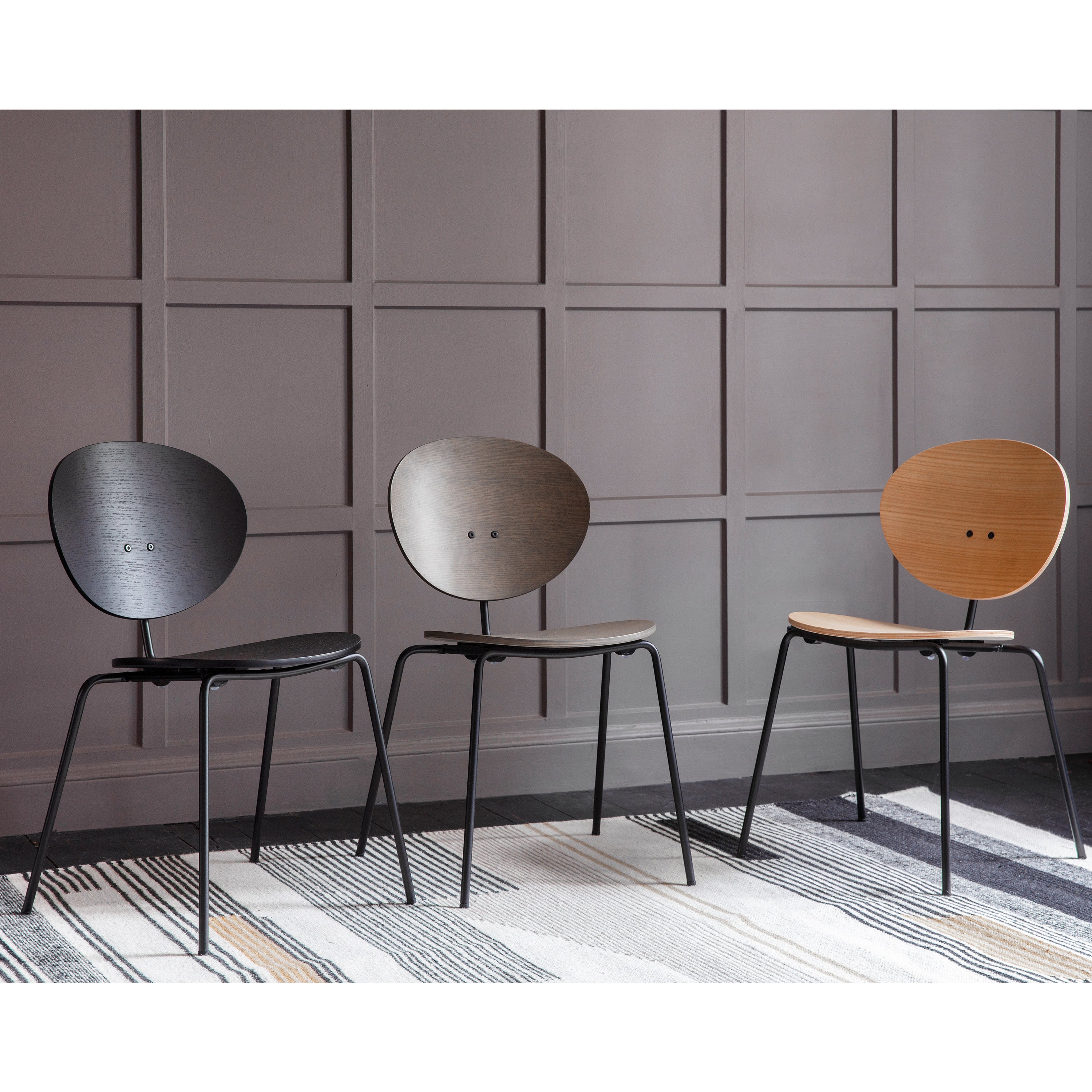 With a simple metal frame and sleek design, these chairs are perfect for any modern dining room. The set of four chairs comes in two beautiful finishes: a sleek grey or a warm natural wood tone, so you can choose the one that best suits your decor.