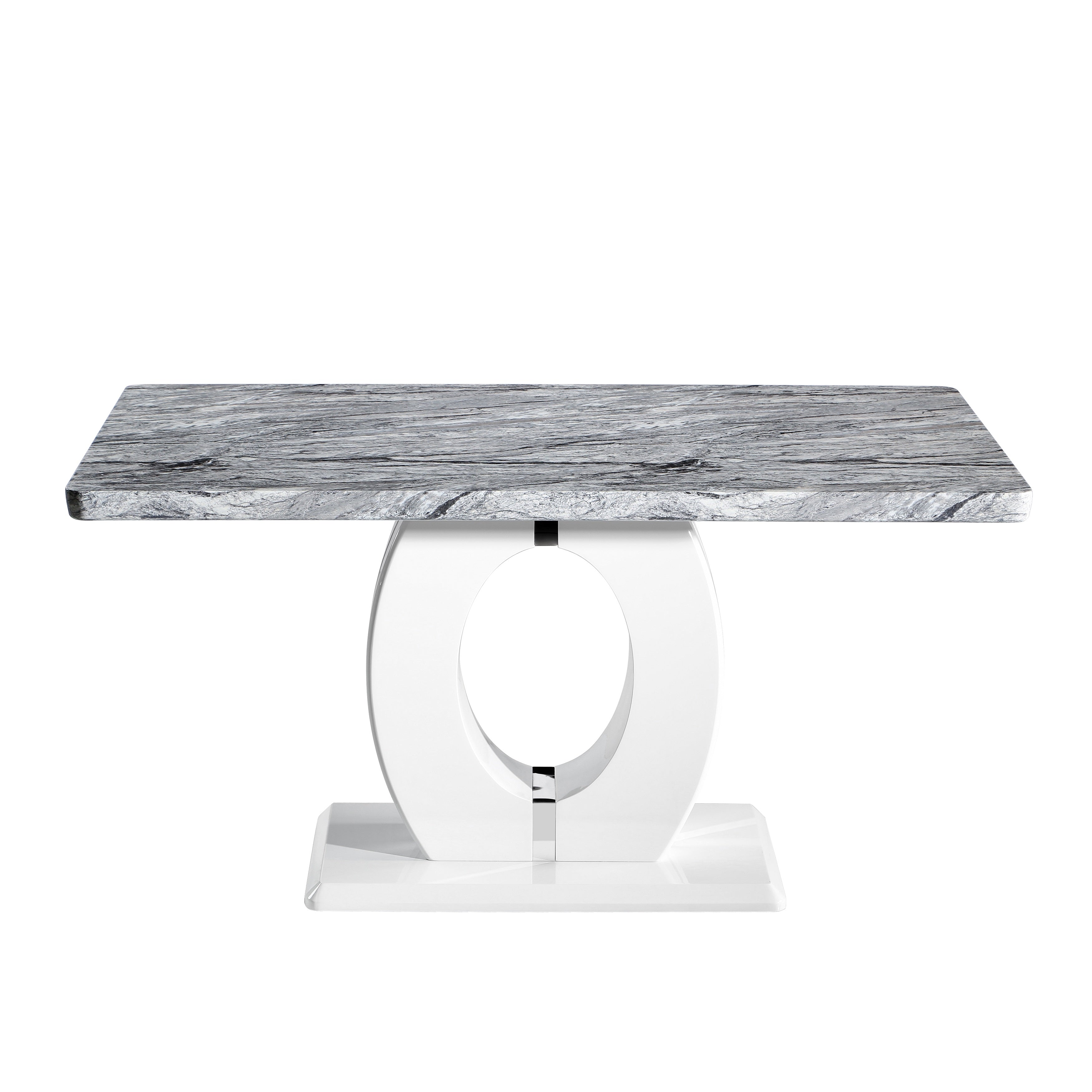 A modern styled Marble Top Effect Dining Table with a circular highly Polished Chrome base. This stunning table is a real alternative to marble and has a feeling of strength and solidity. Complementing the 150cm Marble Top Effect Dining Table, is a 110cm Marble Top Effect Coffee Table.